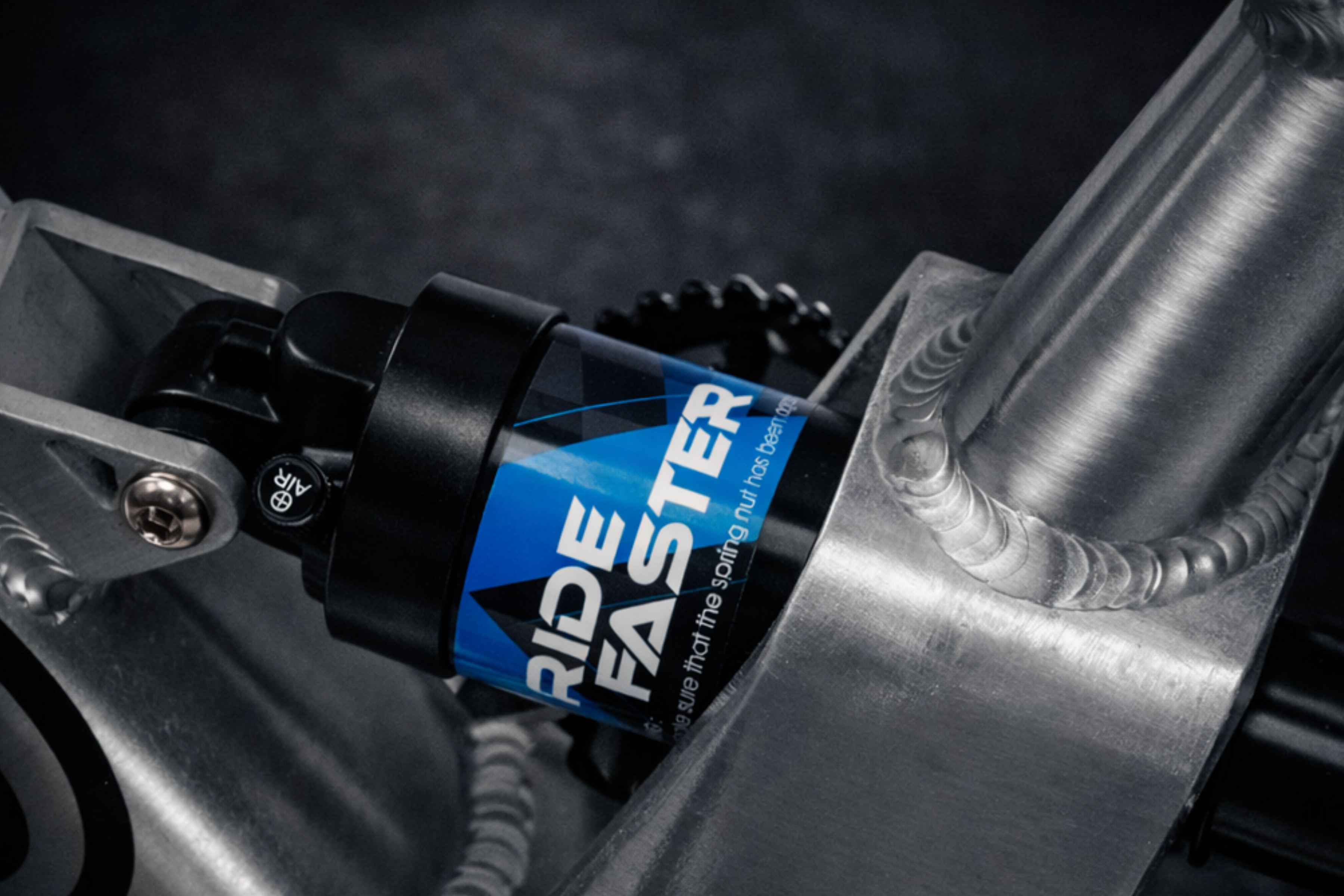 - First of its kind for the kids electric balance bike market with it through frame rear shock mounting position using the FASTACE AOS01 190mm air adjustable shock with separation piston - 57mm of Travel