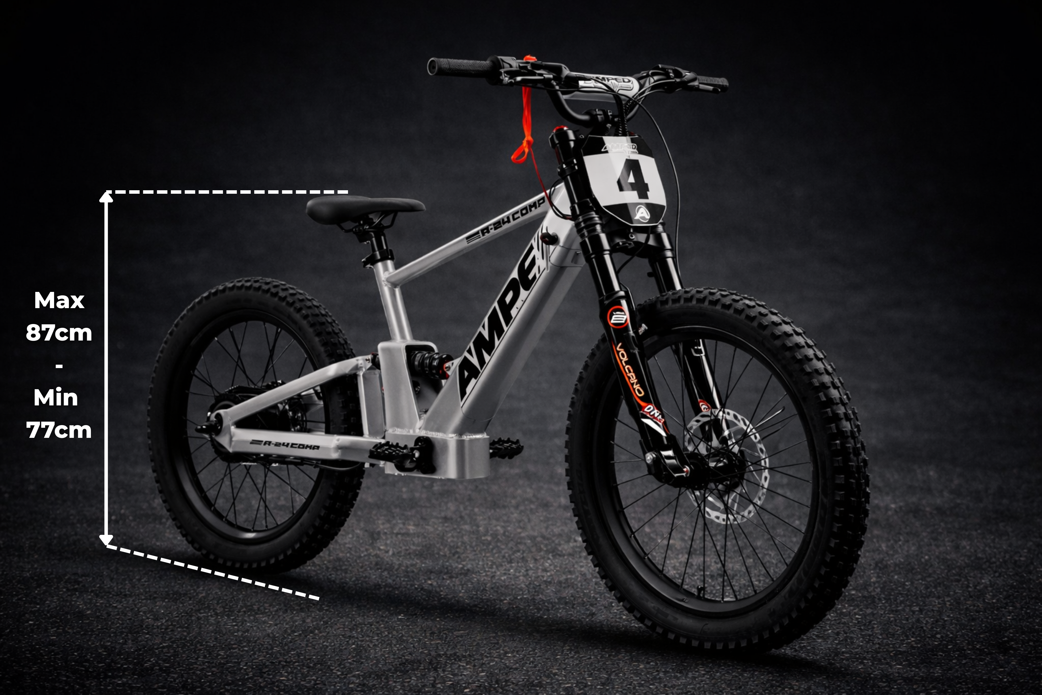 The Amped A24 Comp Electric Bike is designed with carefully considered performence based dimensions to ensure a comfortable and confidence-building fit for young riders wanting to take their riding to the next level, with an adjustable seat height ranging from 77cm to 87cm the bike suits children with an inside leg of 78cm so that both fit on the floor comfortably, parents can easily adjust the seat along with adjust the front and rear suspension to ensure the rider is comfortable while pushing the limits.