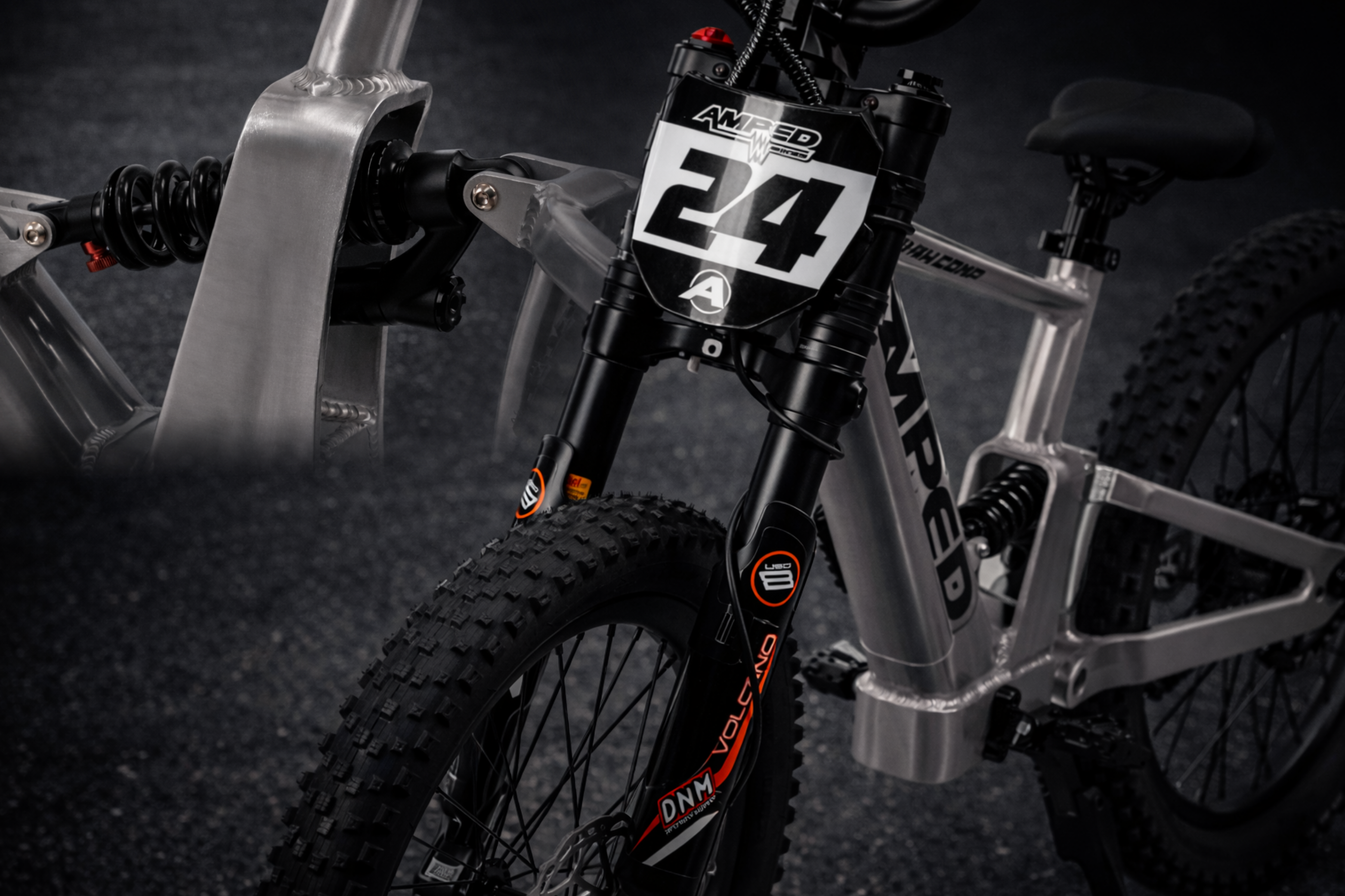 The Amped A24 Comp has both front and rear suspension, On the front the bike is fitting with standard DNM Hydraulic Adjustable Fork with 120mm of travel and at the rear its fitted with a FASTACE BCA12AR Rear Shock With Bag giving 60mm of Travel, so it’s ready for bumps, Jumps and uneven ground. Whether your child is riding over grass, gravel or trails, the suspension helps smooth out bumps and keeps the bike feeling stable and easy to control. That means a more comfortable ride for your child and more peace of mind for you when adventures go beyond the usual paths.