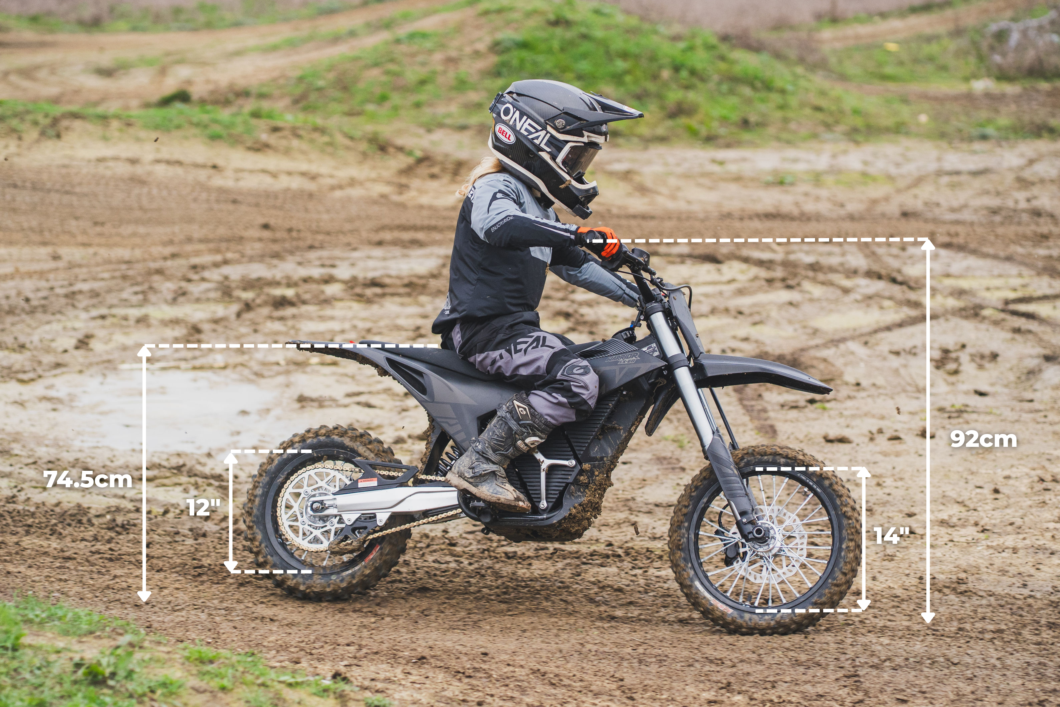 The RFN Youth SX-E8 electric motocross bike is purpose-built for young off-road riders, combining compact bike dimensions with high-performance capability. Featuring a 14-inch front and 12-inch rear wheel setup, along with 205mm front suspension travel and 235mm rear travel, it delivers exceptional stability and control across rough terrain. With a lightweight frame of just 58kg with a seat height of 74.5cm The RFN SX-E8 is designed for easy handling, rider progression, and a perfect ergonomic fit. Its balanced wheelbase of 1145mm and durable steel construction make the SX-E8 one of the best electric motocross bikes for kids seeking confidence, comfort, and real off-road performance.